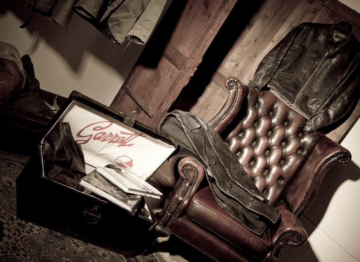Garrett-Marcello Pampaloni- レザーウェアー Pampaloni家は、古くから革産業に携わって来ました。1982年に規模拡大に伴いフィレンツェ郊外に工場を設立しました。製品のラインが非常に美しく、染色やビンテージ加工等の技術が非常に高く、PRADA, DOLECE & GABBANを始め多くの有名ブランドのレザージャケットの生産ラインを任される様に成りました。Garretto-Marcello Pampaliniの自社ブランドでは、デザイン、革の加工、生産まで全て自社で行っております。高級レザージャケットでは、他に追随を許さない地位にあります。